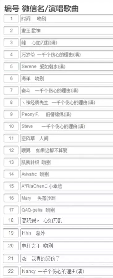(請按照所錄點唱機(jī)的編號順序找自己的對應(yīng)編號)