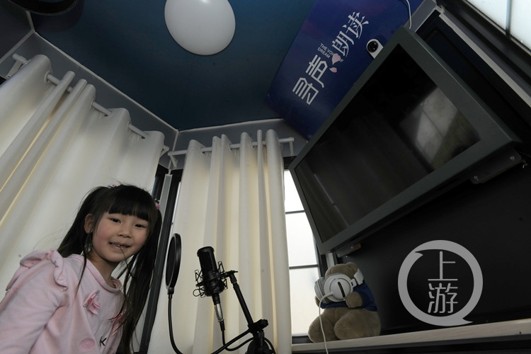 22日中午,重慶首個“尋聲朗讀亭”現身觀音橋,朗讀亭內設有專業的錄音棚設備、專業的錄音軟件,同時還有國家級錄音師指導市民錄制。