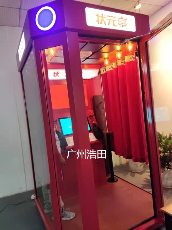 浩田移動自助唱吧占地面積僅2平米,設備獨立鋼化玻璃,一體化鐵架,可拆卸自由變更經營位置。