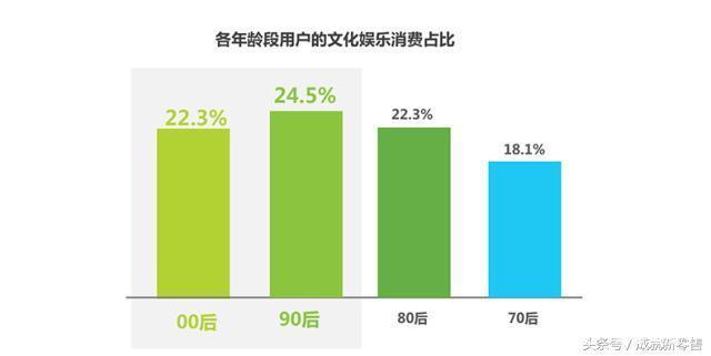 00、95后文化娛樂消費占比超20%,占比逐年提高。