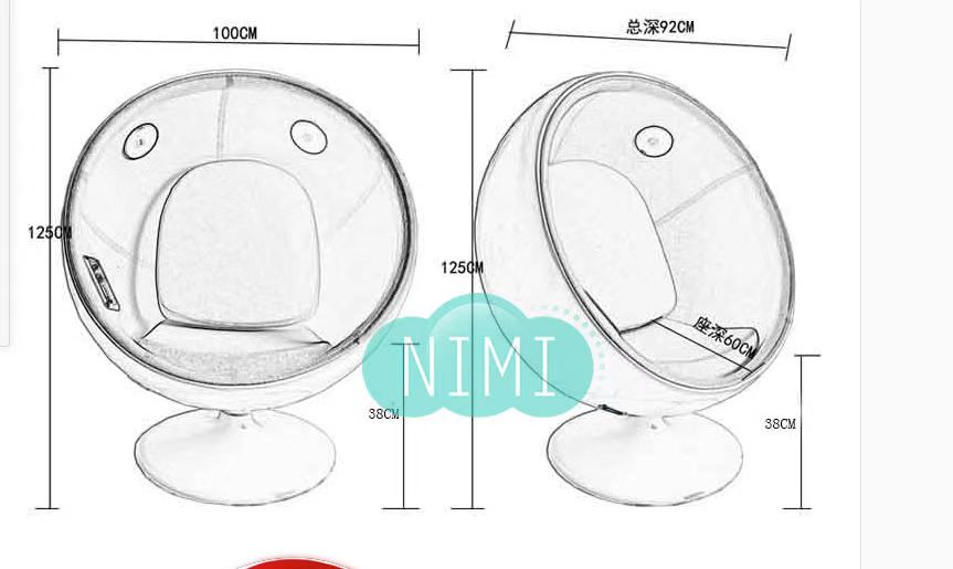 1.外觀:蛋椅玻璃鋼造型,可360度旋轉(zhuǎn);